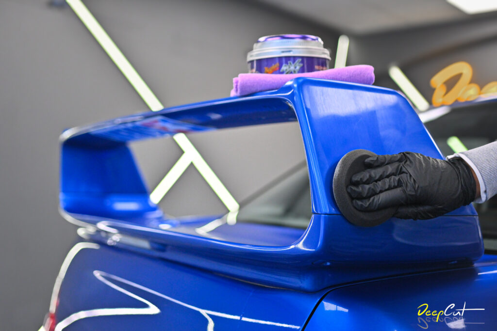 W przeciwieństwie do szybkich wosków na myjniach, u nas proces obejmuje przygotowanie lakieru (odtłuszczenie), ręczną aplikację cienkiej, równomiernej warstwy oraz precyzyjne dotarcie puszystymi mikrofibrami w kontrolowanych warunkach.